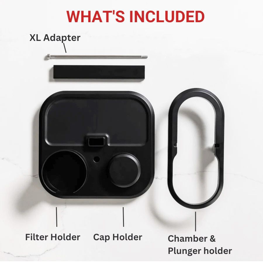 The AeroPress Organizer Stand is a compact, sleek storage solution with compartments for your coffee press, stirrer, filter cap, and paper filters, which makes it ideal for keeping home and office countertops and cabinets neat.
