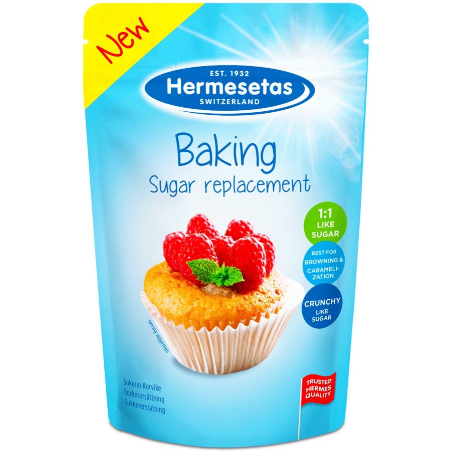 Hermesetas Baking sugar substitute is a tabletop sweetener based on erythritol and steviol glycosides with isomaltulose. It looks and tastes like sugar but contains 70 % fewer calories than regular sugar. Hermesetas Baking is an excellent sugar substitute for baking, cooking, and sweetening beverages.