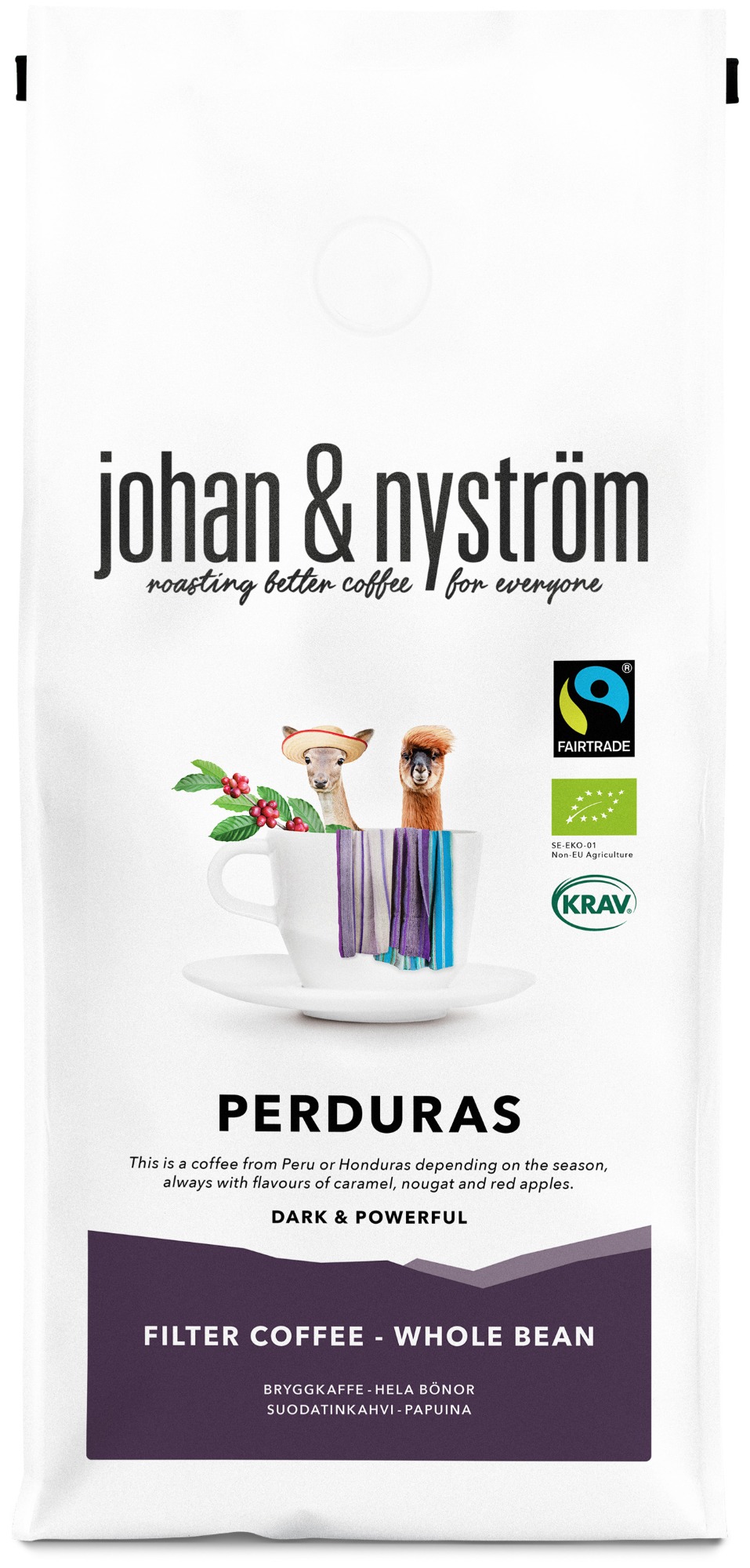 Johan & Nyström Perdura FTO coffee comes, depending on the season, from Peru or Honduras. The origin is the only thing that varies – the flavor notes of caramel, nougat and red apples are always there.