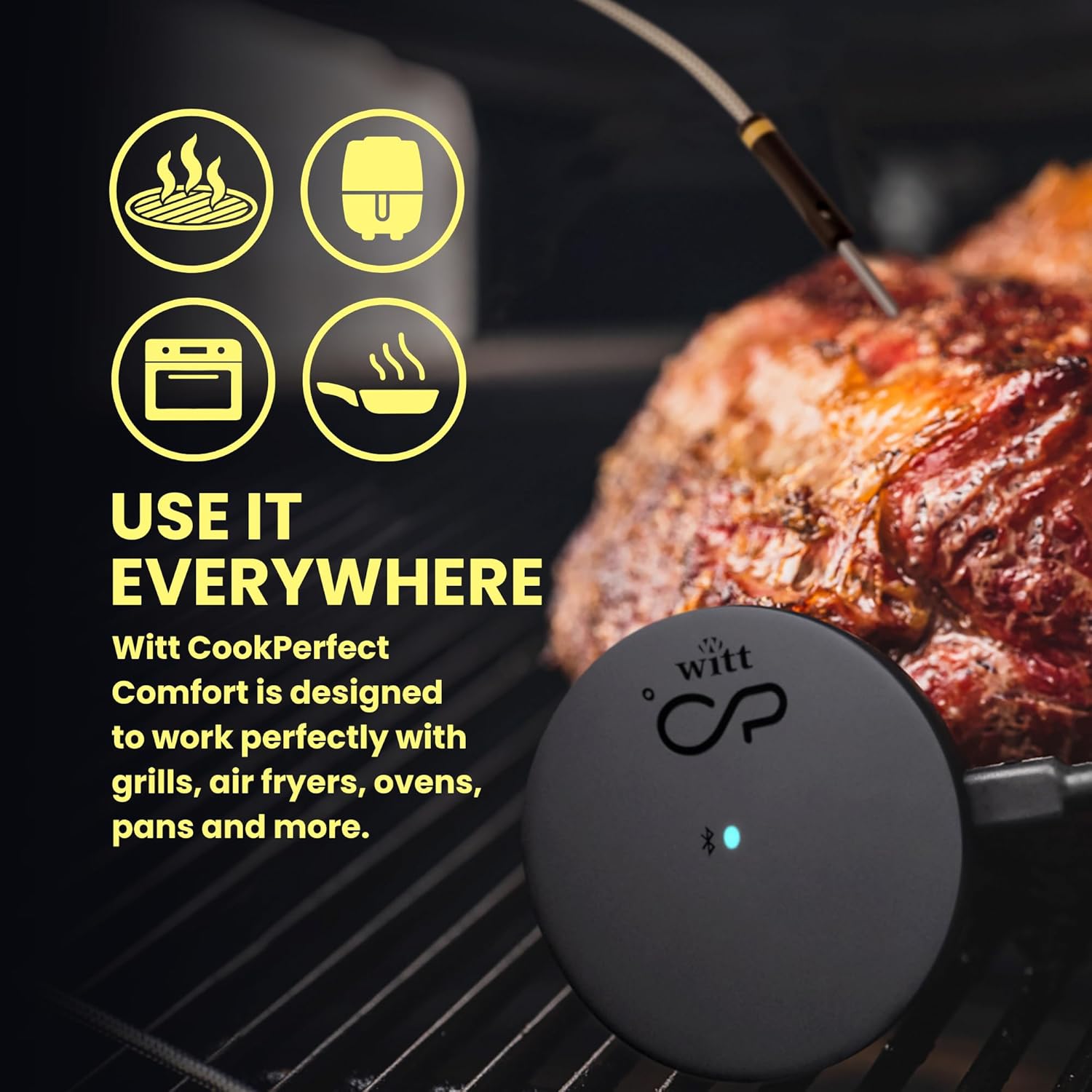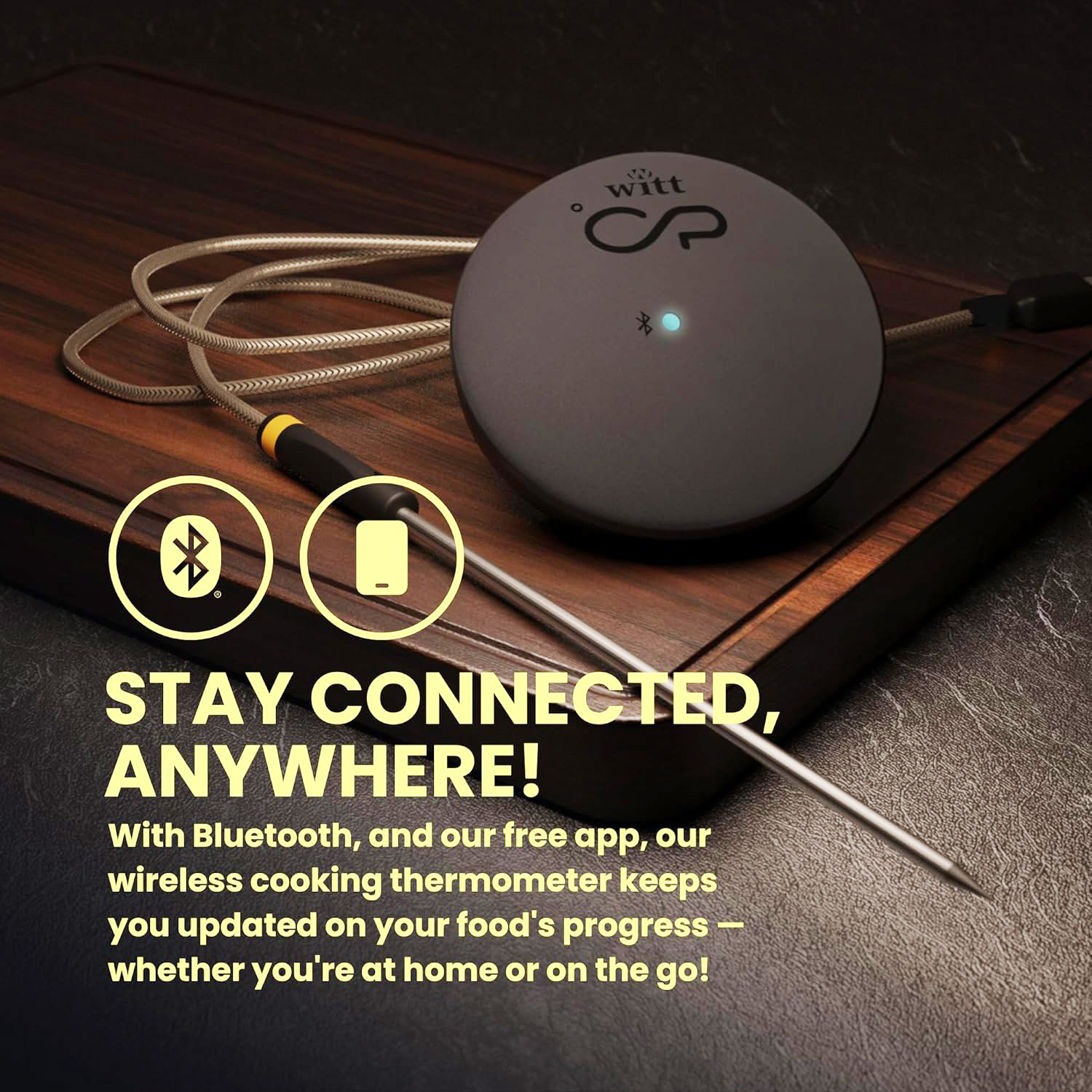 Achieve perfect cooking results with the Witt CookPerfect Comfort Single thermometer. Connect via Bluetooth to your phone for real-time temperature updates and readiness alerts, even from 120 meters away.