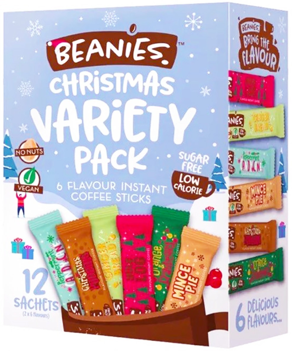 V.G.Beanies Christmas Variety Pack smaksatt snabbkaffe, 12 portionsförpackningar