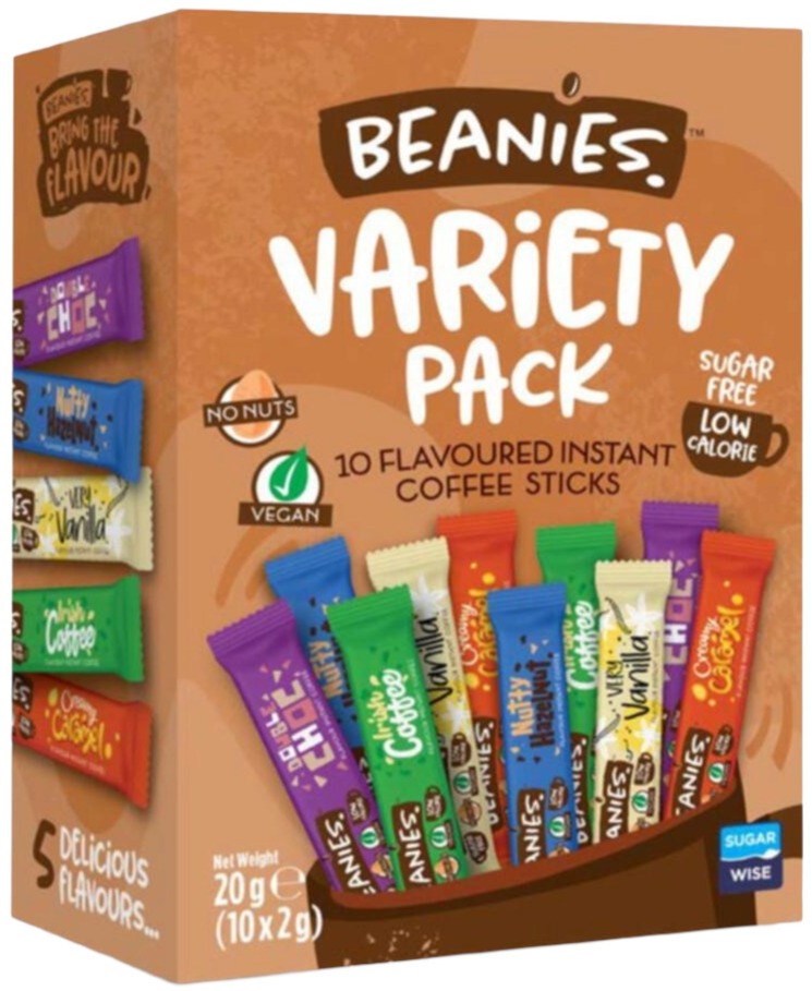 Beanies Variety Pack smaksatt snabbkaffe, 10 portionsförpackningar