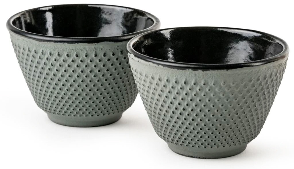 Ett set bestående av två Bredemeijer Xilin-tekoppar i gjutjärn, som perfekt matchar en gjutjärnstekanna. Tekopparna har en emaljerad insida och dubbad ytstruktur.