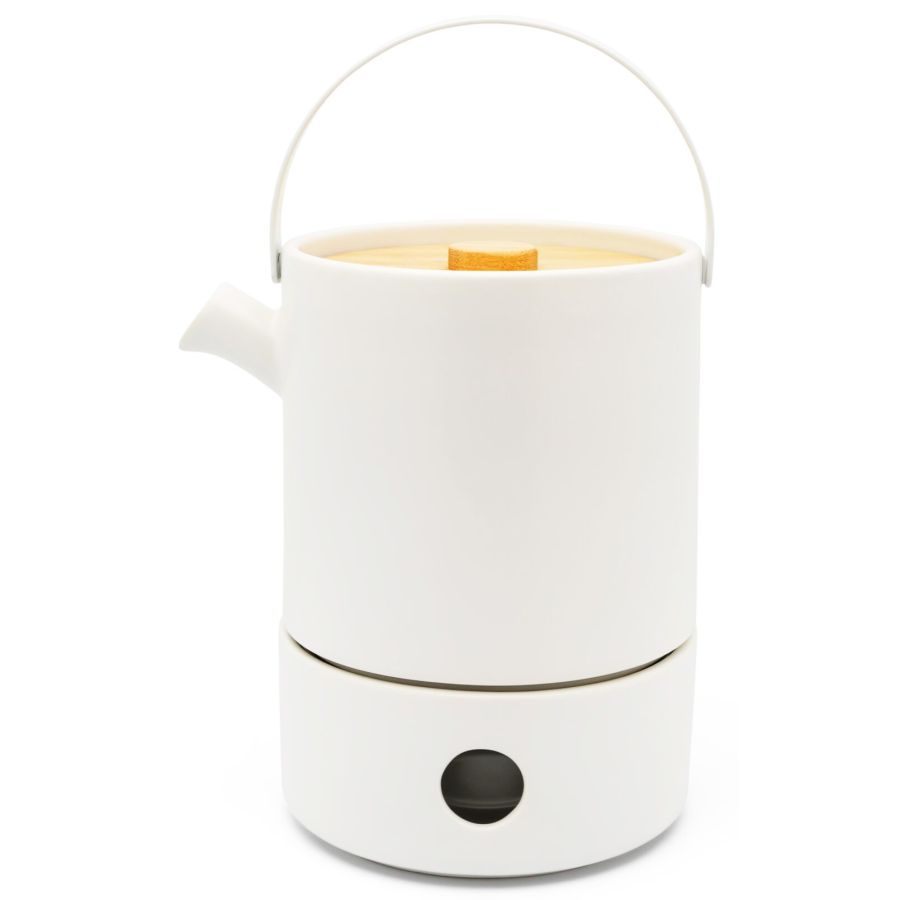 Bredemeijer Umea keramisk tekanna 1,2 l + värmare för tekanna, vit