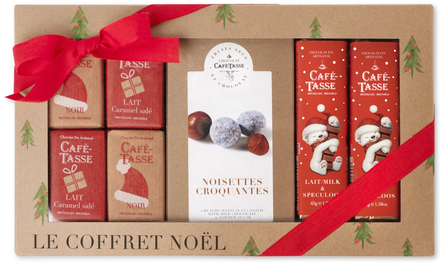 Fira säsongen med denna festliga presentbox från Café-Tasse, perfekt för chokladälskare. Inuti hittar du ett urval av underbara godsaker: