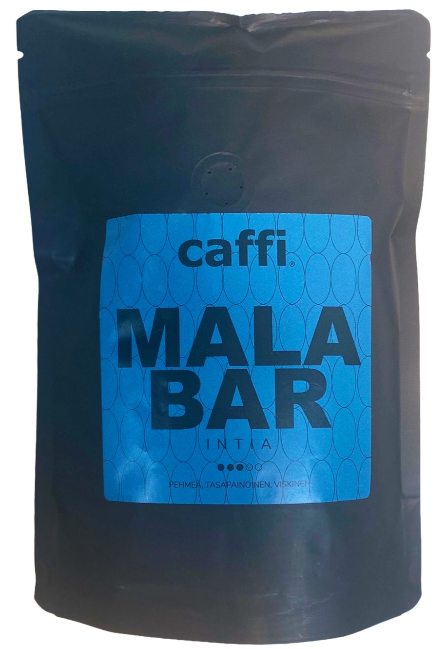 Caffi India Monsoon Malabar är ett mycket mjukt kaffe med låg syra. Det får sin speciella karaktär från "Monsoon" -processeringen, där kaffet lagras i 1-2 månader i vägglösa förråd, som fuktiga monsunvindar kan blåsa igenom. Detta gör kaffet exceptionellt mjukt och är därför en långvarig favorit hos mången.