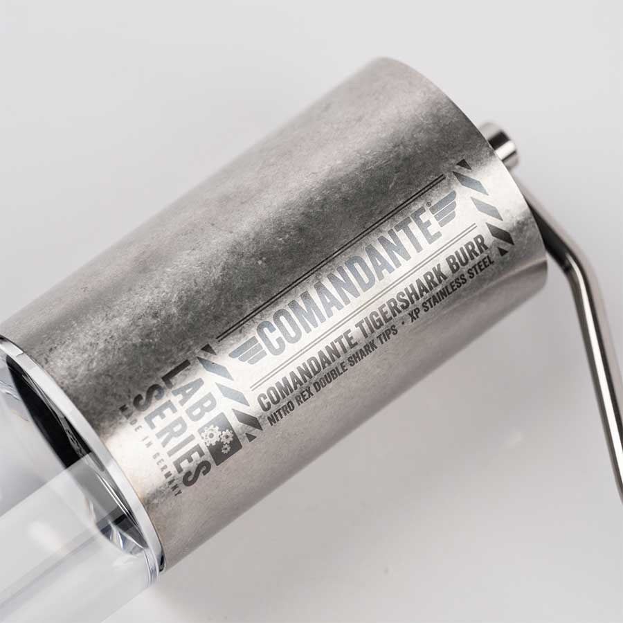 Comandante® C40 Mk4 Tigershark kaffekvarnen kombinerar avancerade material, en uppdaterad kvarnsuspension och en okrossbar polymerglas-behållare för kaffebönor för att leverera ett smidigare arbetsflöde. Kvarnens lägre vikt och förbättrade hållbarhet gör den extra lätt att hantera.