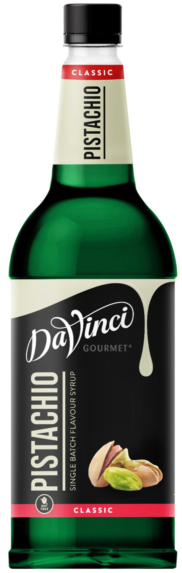 DaVinci Gourmet Pistachio smaksirapen erbjuder en autentisk pistagesmak med en naturligt nötaktig ton. Den passar utmärkt till kaffe, varm choklad, milkshakes och cocktails. Det noggrant framtagna receptet blandas jämnt i både varma och kalla drycker utan att skära sig.