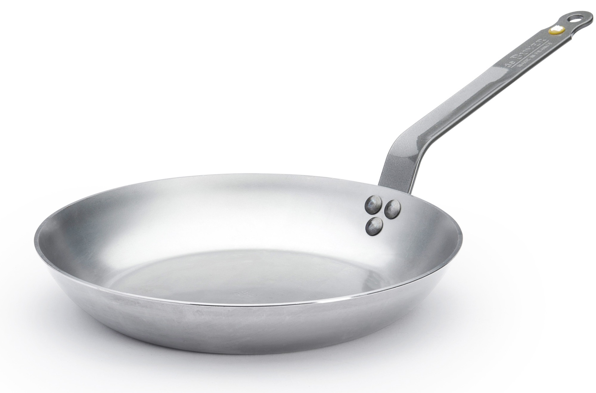 de Buyers kolstålspannor har tillverkats i samma fabrik i Frankrike sedan 1830. Kolstålspannan är den traditionella franska stekpannan som tål hög värme och dess kant är relativt hög och rundad för att man skall kunna skaka den utan att maten faller ur. Handtaget i gjutjärn är platt så att man kan avlasta handleden genom att stödja handtaget mot underarmen. Handtaget blir inte varmt vid normal användning men om pannan hålls varm en längre tid får man använda en pannlapp eller ett handtagsskydd.