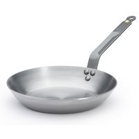 de Buyer Mineral B Element-kolstålspannan är en storsäljare! Det är i grunden en traditionell kolstålspanna med den skillnaden att pannorna är täckta med ett tunt lager naturligt bivax, vilket både skyddar pannan mot rost och gör att den fortare blir instekt. Serien är mycket robust och värmetålig, med en tjocklek mellan 2 och 3 mm. Den passar alla värmekällor inklusive induktion och öppen eld.