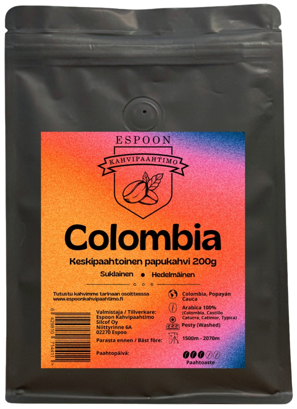 Espoon Kahvipaahtimo Colombia mellanrost 200 g kaffebönor