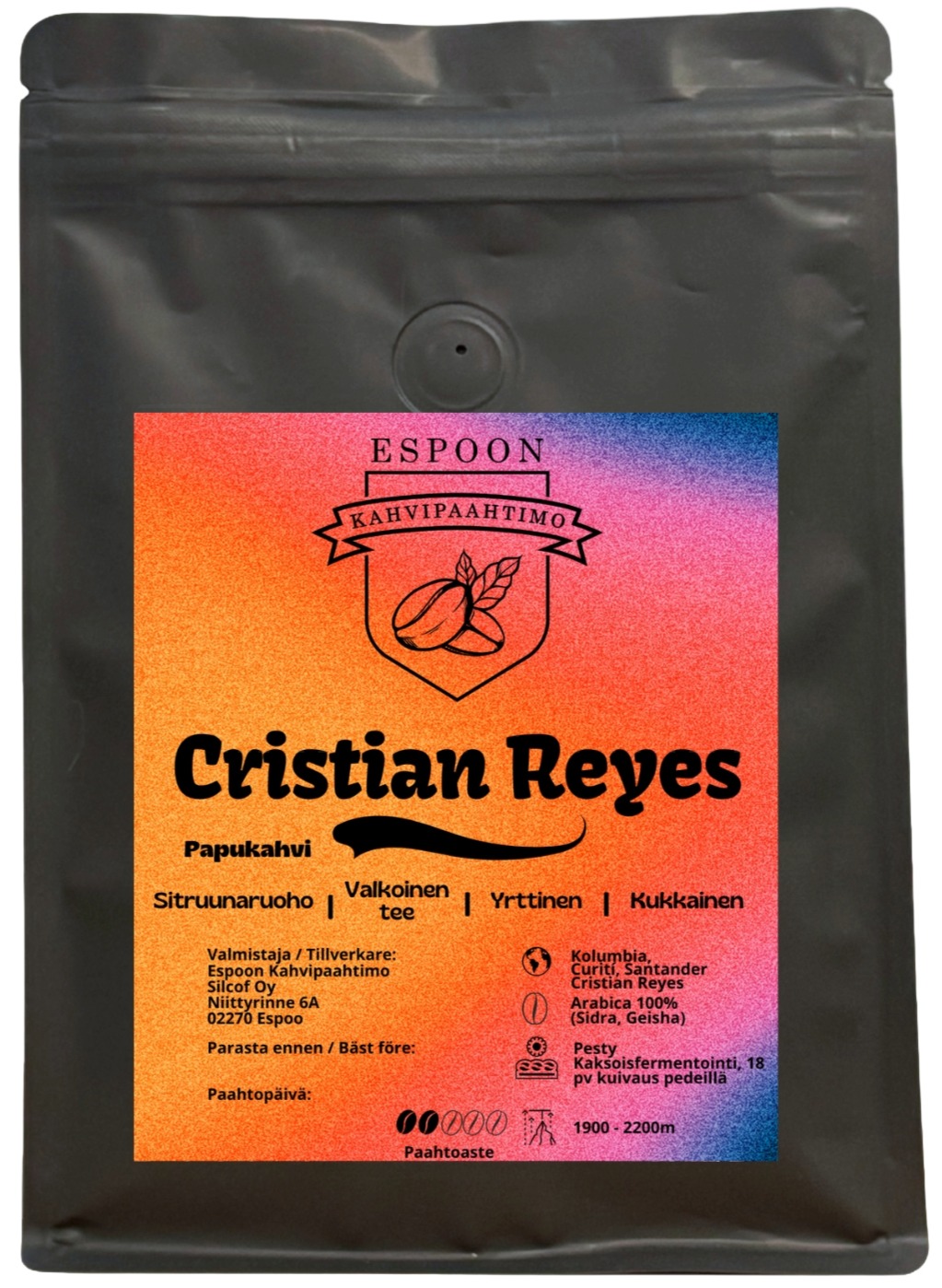 Espoon Kahvipaahtimo Cristian Reyes Sidra & Geisha Blend 200 g kaffebönor