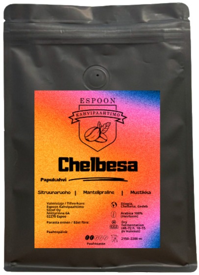 Detta kaffe kommer från byn Chelbesa i Gedeb-regionen i Etiopien och representerar regionens unika karaktär på bästa sätt. Kaffebuskarna av sorten Heirloom växer på hög höjd, 2150–2200 meter, och bönorna har bearbetats med metoden dry fermentation under 48–72 timmar och har torkats i 10–15 dagar på bäddar.