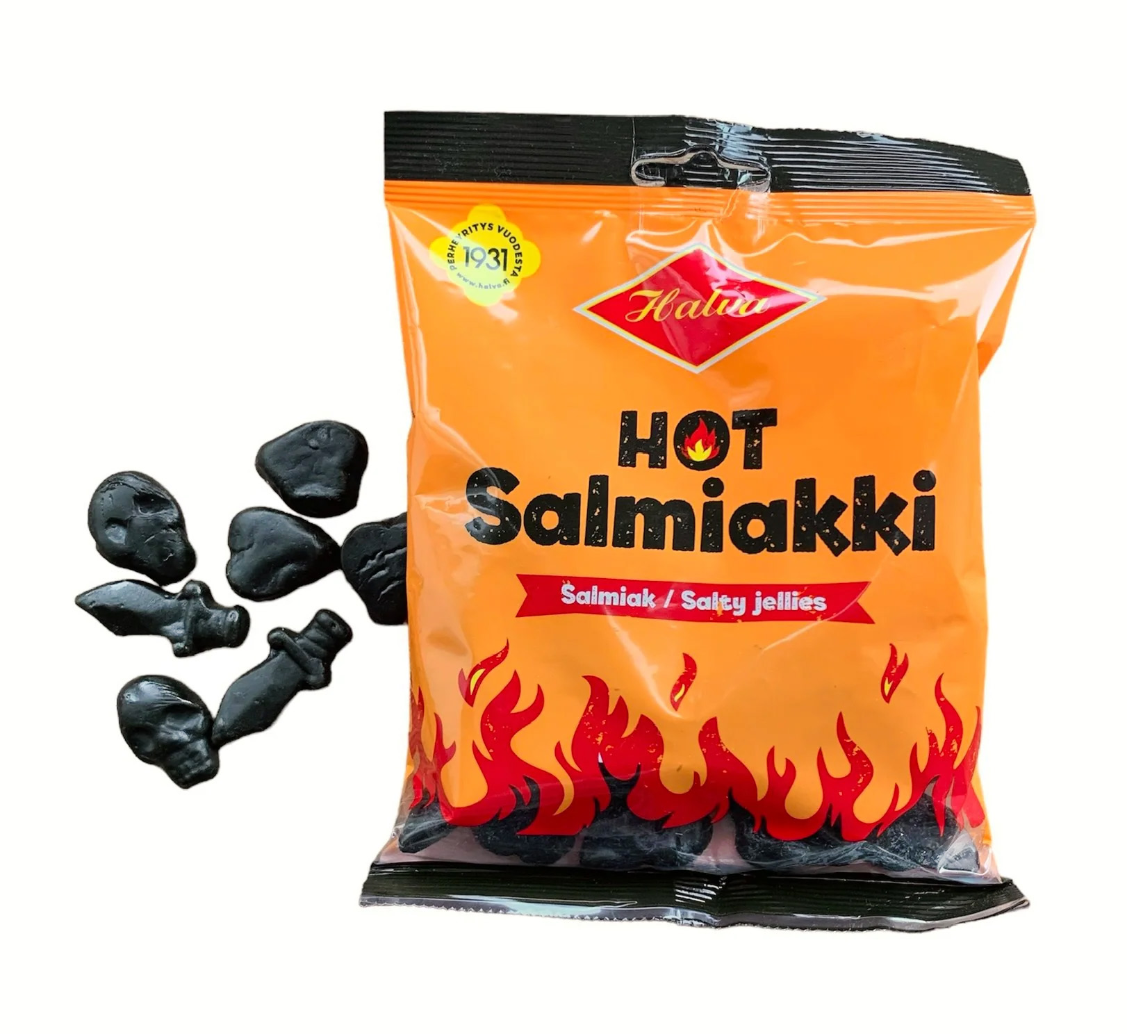 Hottis-salmiak med styrka som varierar från starkt eldiga till supersalt.