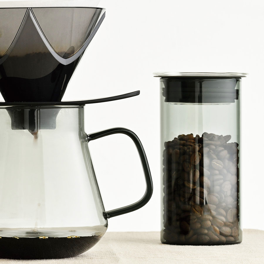 Hario Colors Canister -förvaringsburken i glas kombinerar stil med praktikalitet. Det genomskinliga glaslocket gör att du enkelt kan se innehållet ovanifrån - perfekt för att hålla koll på dina ingredienser, särskilt när de förvaras i en låda. Burken är idealisk för förvaring av kaffe, te eller torra matvaror.