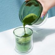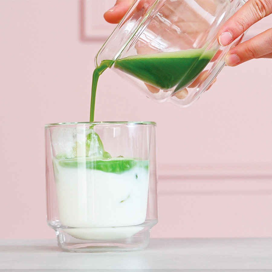 Det transparenta, värmetåliga borosilikatglaset framhäver matchans djupa gröna nyans och gör varje kopp lika inbjudande att se på som den är att dricka.