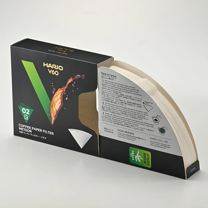 HARIO V60 Meteor-filterpapper ger en helt ny bryggupplevelse med snabbt och jämnt vattenflöde.
