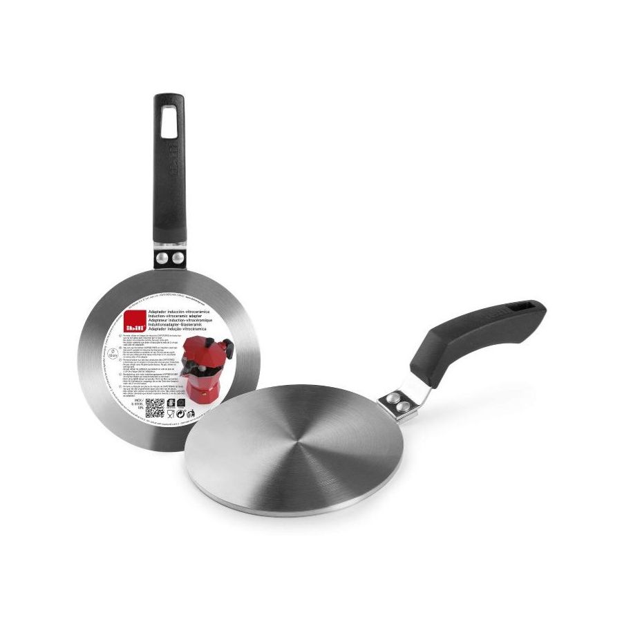 Med hjälp av en induktionsadapterplatta kan du även använda aluminium- och andra kokkärl på en induktionshäll som normalt inte fungerar på hällen. Plattan placeras på hällen, värms upp och överför värmen till det kokkärl som ställs ovanpå.
