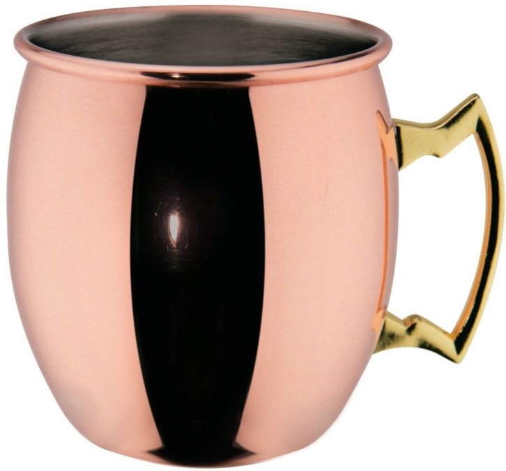Kopparpläterad traditionell Moscow Mule-mugg tillverkad av rostfritt stål med slät yta.