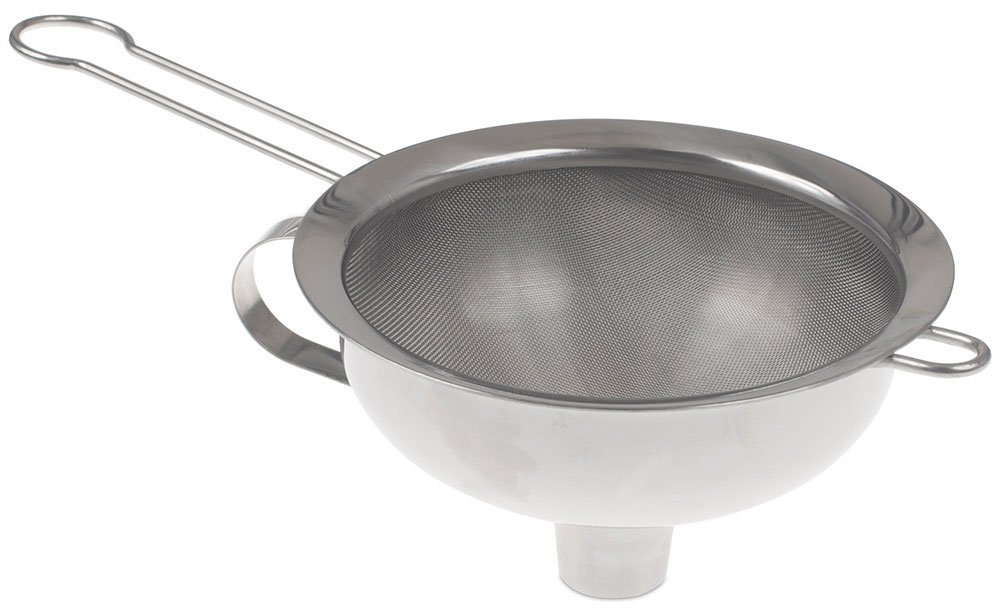 Tratt och durkslag av rostfritt stål som passar i iSi-sifonen. Tratten gör det enkelt att fylla sifonens behållare. Med hjälp av durkslaget får man filtrerat bort tex. frön, fruktkött osv. från mat som man vill spritsa.
