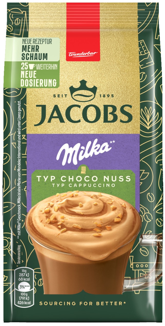För fans av Jacobs Choco Cappuccino med Milka® choklad: prova Jacobs Choco Nut Cappuccino. En mjuk blandning av Jacobs kaffe, Milka® choklad och en touch av hasselnöt.