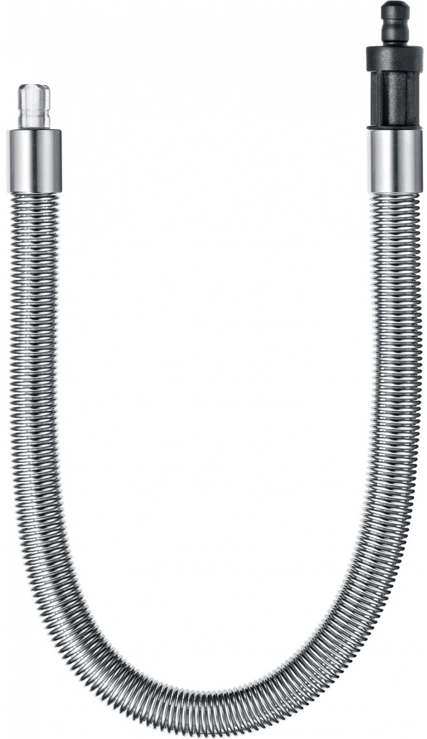 Mjölkslangen med hölje i rostfritt stål kan skäras till i önskad längd, men vi rekommenderar den förmonterade längden på 23 centimeter.
