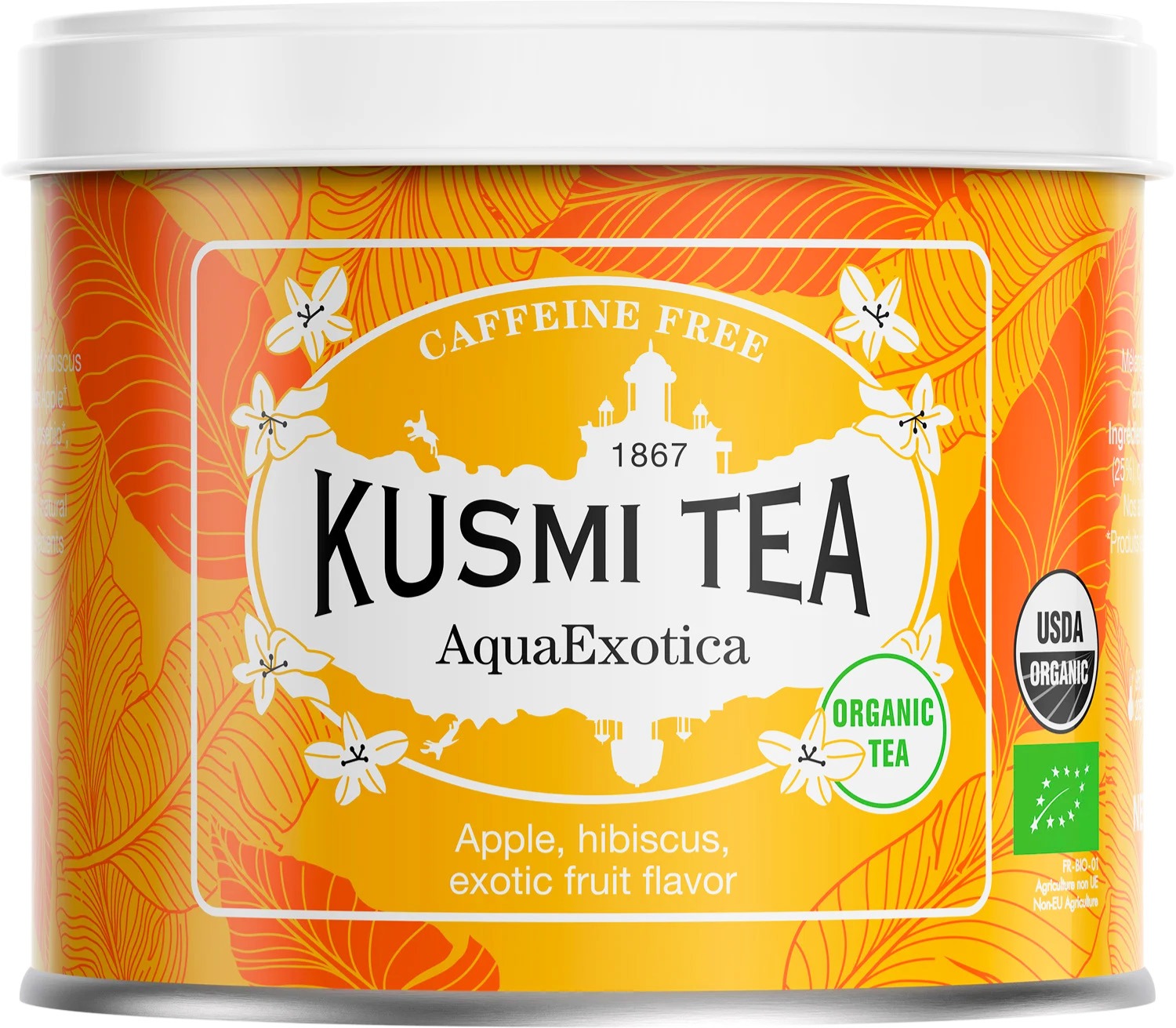 Kusmi AquaExotica är en ekologisk frukt- och örtteblandning med en frisk, exotisk smakprofil. Den är naturligt koffeinfri och passar att njuta av när som helst under dagen.