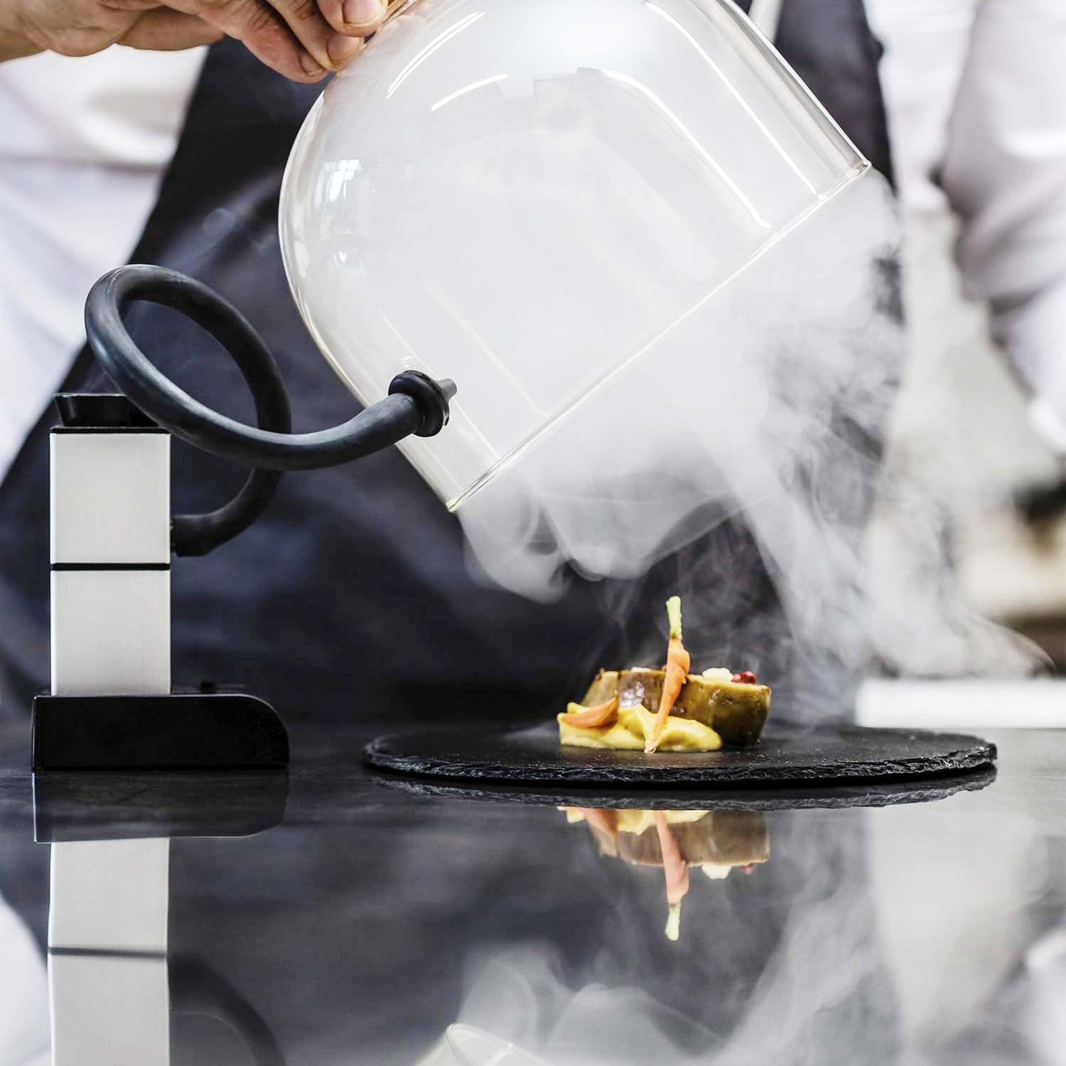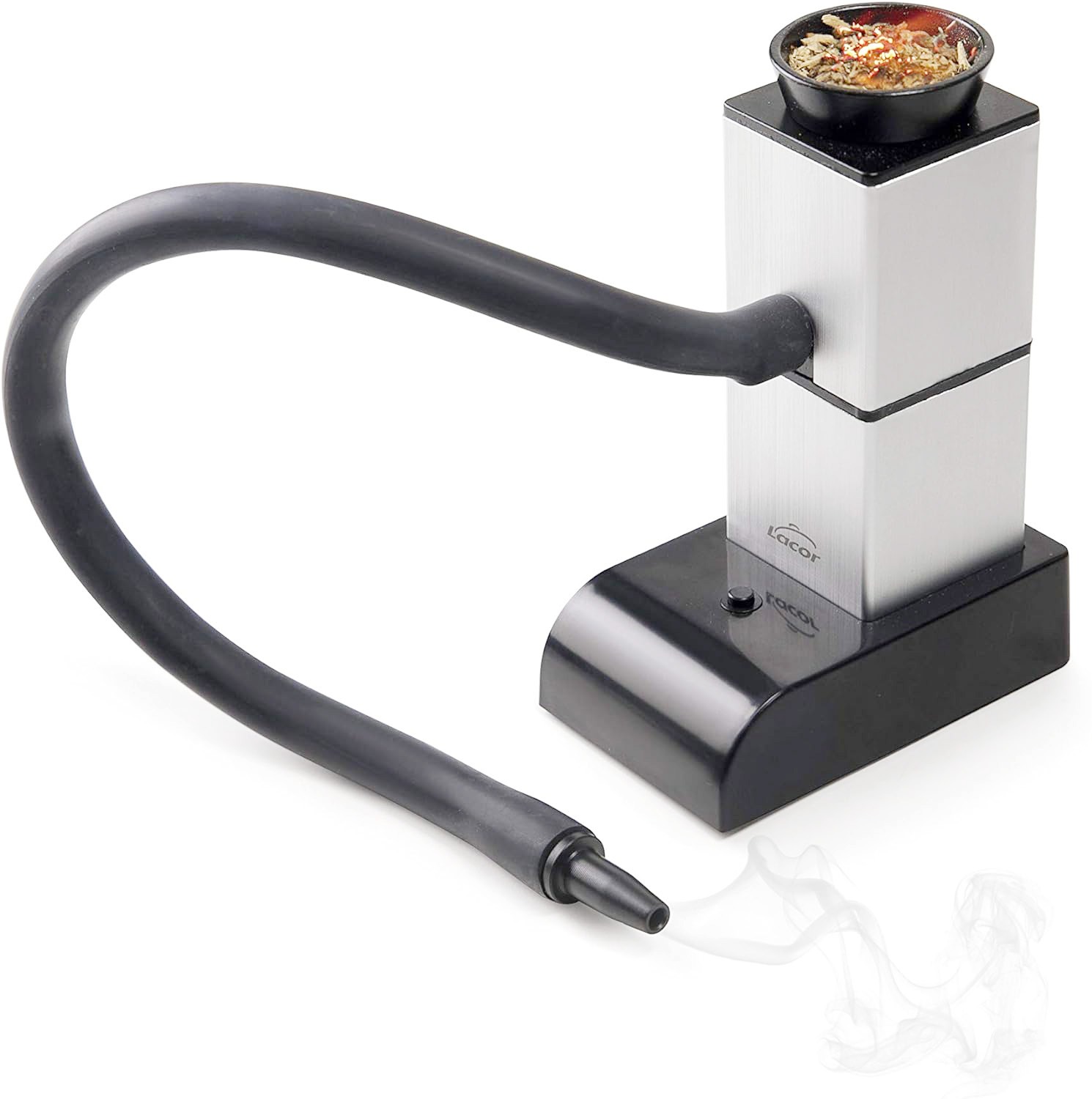 Med Lacors rökpistol kan du framställa olika rökta ingredienser och livsmedel. Matrökaren har en avtagbar övredel och en droppbricka för tjäran som droppar från röken.