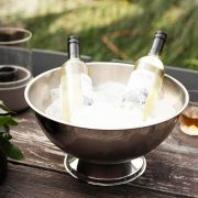 Utsidan är i polerat rostfritt stål medan insidan har en matt finish. Med en diameter på 35 cm är denna champagneskål lämplig för tre stora flaskor.