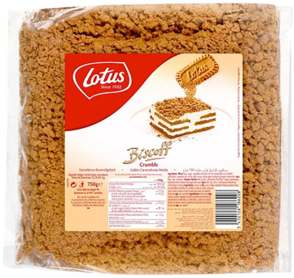 Lotus Biscoff Crumble 750 g är krispiga smulor av den klassiska karamelliserade Biscoff-kexet. Perfekt som topping på desserter, glass, yoghurt eller bakverk, och ger en rik, kryddig sötma och härlig crunch.