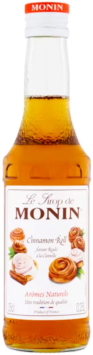 Monin Cinnamon Bun syrupen har en söt smak av nygräddad kanelbulle och passar i kalla och varma kaffedrycker, varm choklad, cocktails och mocktails.