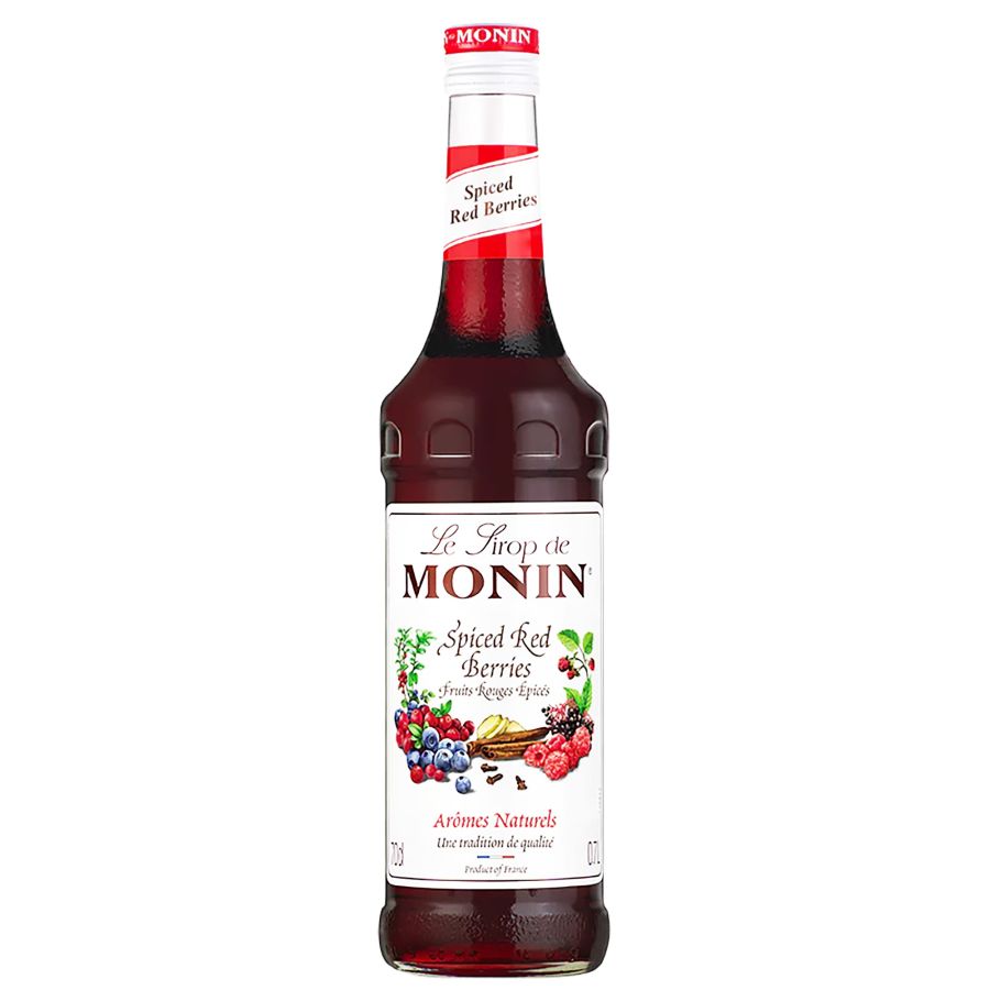 MONIN Spiced Red Berries -syrupen erbjuder en smakkavalkad av olika fruktjuicer (tranbär, blåbär, fläderbär och hallon) och kryddor så som kanel och kardemumma.