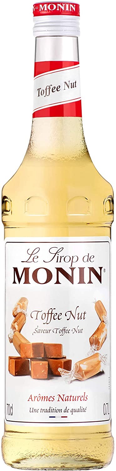 MONIN Toffee Nut smaksirapen ger en oemotståndlig twist till caffe latten, skapar förföriska dessertdrycker och fantastiska glassar.