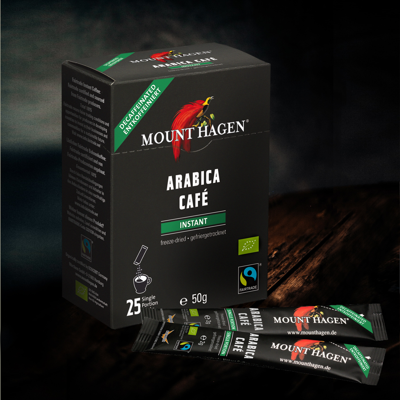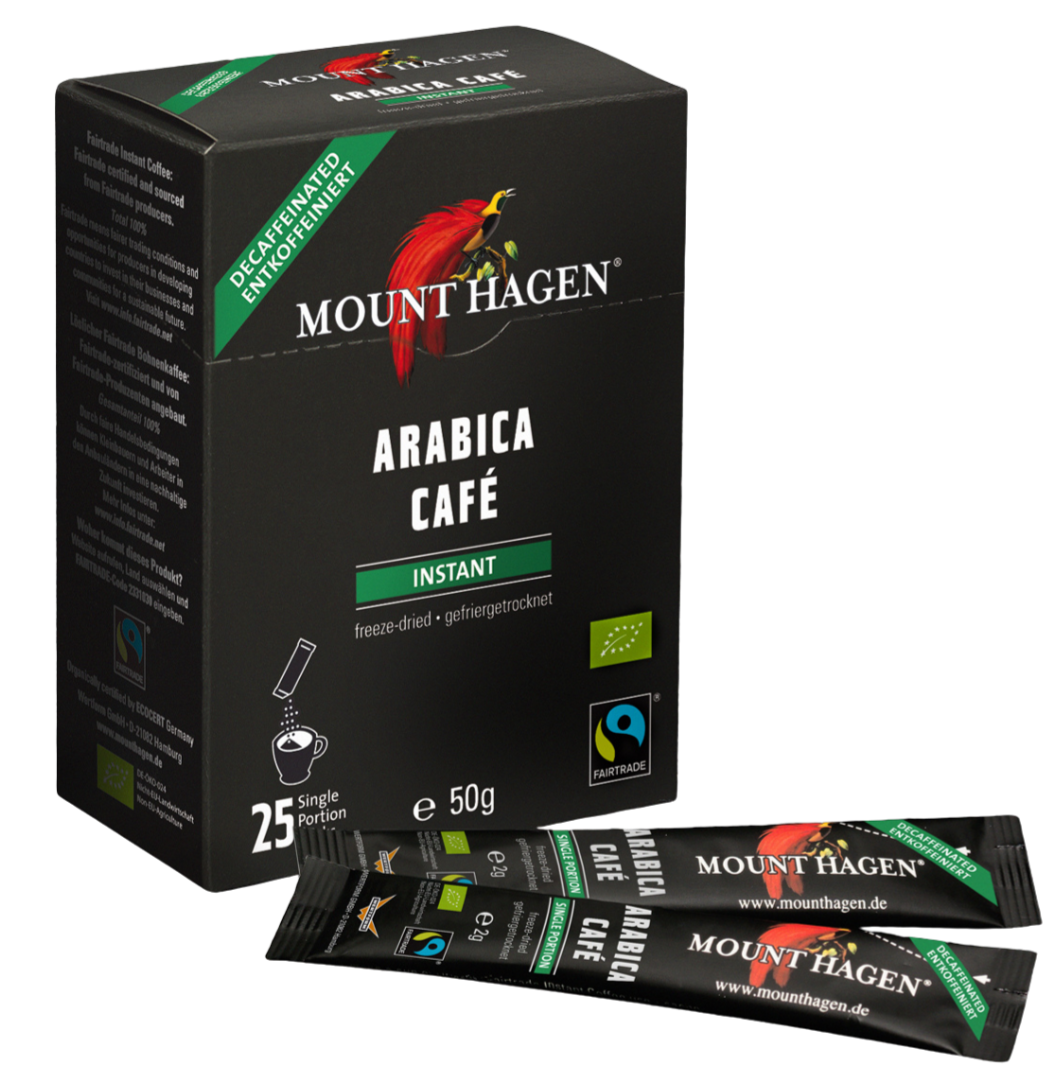 Mount Hagen koffeinfritt snabbkaffe, 25 x 2 g portionspåsar