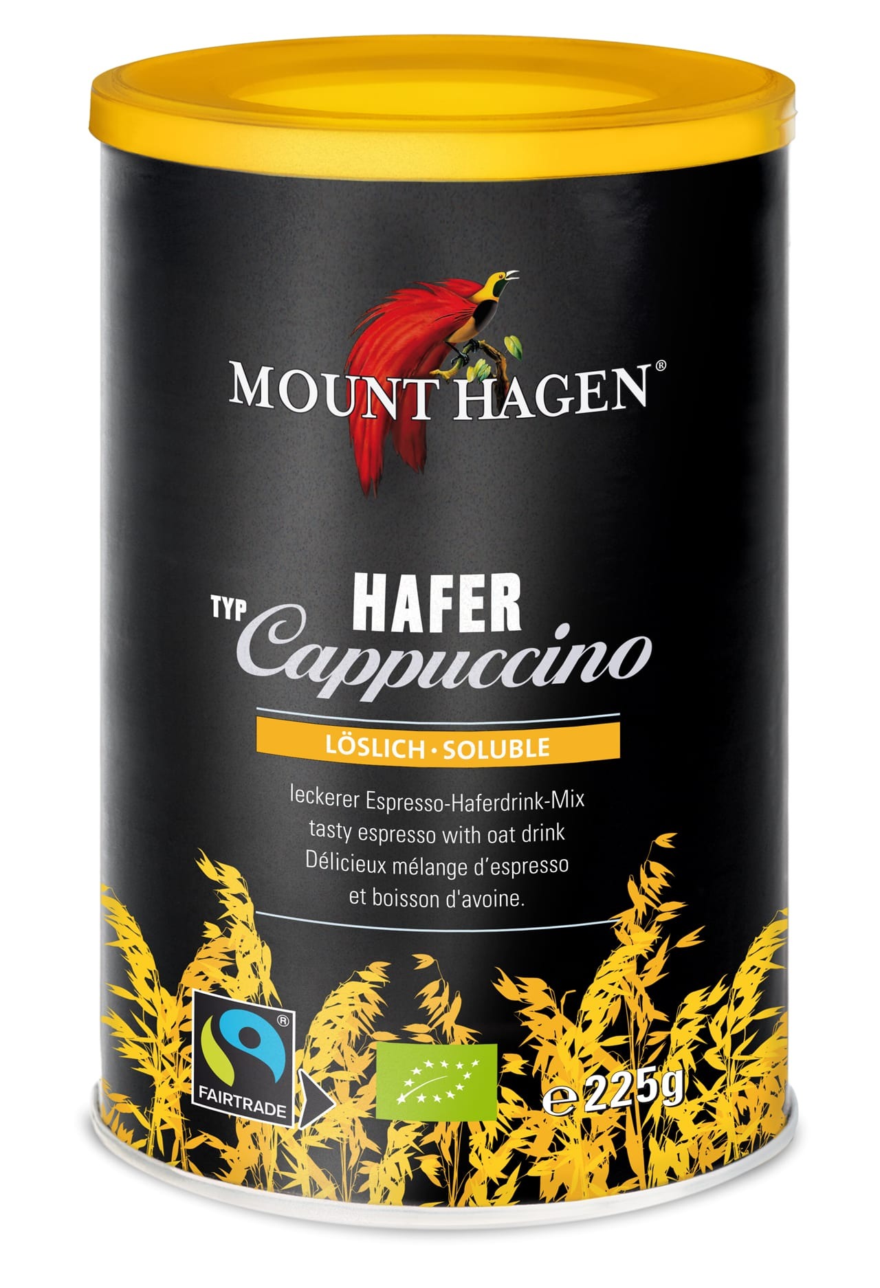 Mount Hagen havrecappuccino är en delikatess – och inte bara för veganer. Smakrik ekologisk Arabica Robusta-espresso möter fin havremjölk, med den lätt karamellaktiga sötman från råsocker. Så om du längtar efter en snabb, otroligt god cappuccino med havremjölk, kommer du definitivt att bli nöjd med denna dryck. Den är också perfekt för kontoret, i en husbil – överallt där en läcker ekologisk cappuccino är ett måste.