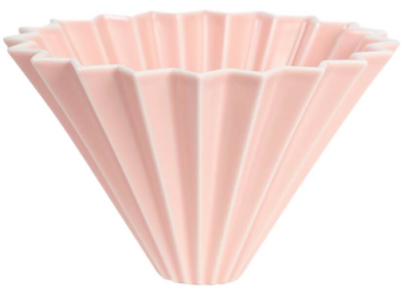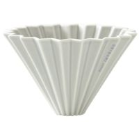 Origami Dripper S -filterhållaren är tillverkad av Mino-yaki-porslin, ett av Japans mest prestigefyllda keramikgods med mer än 400 års historia. Origami är en japansk teknik att vika papper till tredimensionella figurer, vilket inspirerat filterhållarens form.