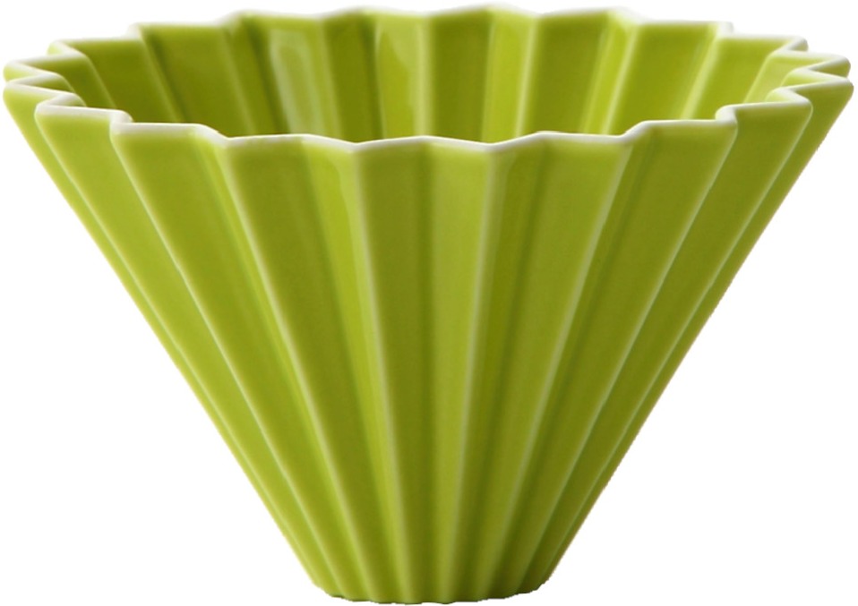 Origami Dripper S -filterhållaren är tillverkad av Mino-yaki-porslin, ett av Japans mest prestigefyllda keramikgods med mer än 400 års historia. Origami är en japansk teknik att vika papper till tredimensionella figurer, vilket inspirerat filterhållarens form.
