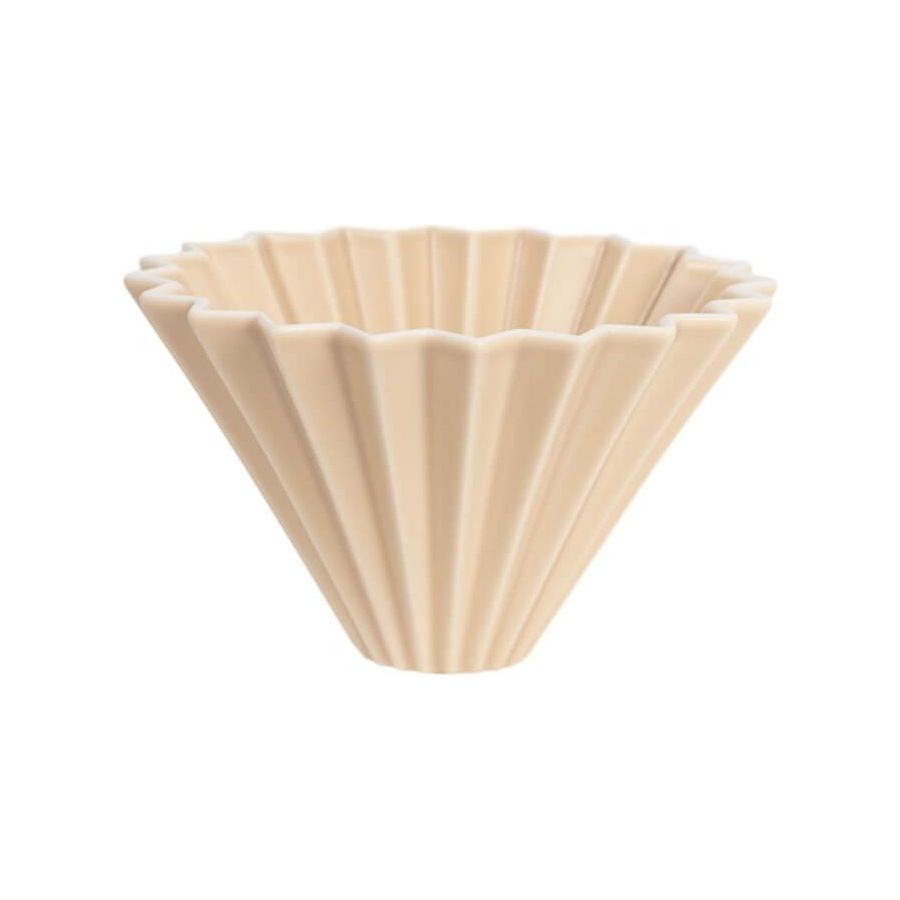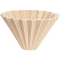 Origami Dripper S -filterhållaren är tillverkad av Mino-yaki-porslin, ett av Japans mest prestigefyllda keramikgods med mer än 400 års historia. Origami är en japansk teknik att vika papper till tredimensionella figurer, vilket inspirerat filterhållarens form.