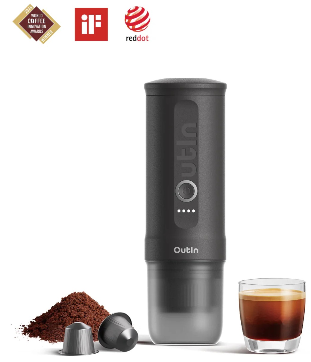 Outin Nano är otroligt liten men utrustad med ett kraftfullt 7500 mAh litiumbatteri som täcker dina dagliga kaffebehov. Den bärbara espressobryggaren i perfekta proportioner har ett uppgraderat pumpsystem – tillsätt bara varmt eller kallt vatten samt dina favoritkaffekapslar eller nymalda kaffebönor.
