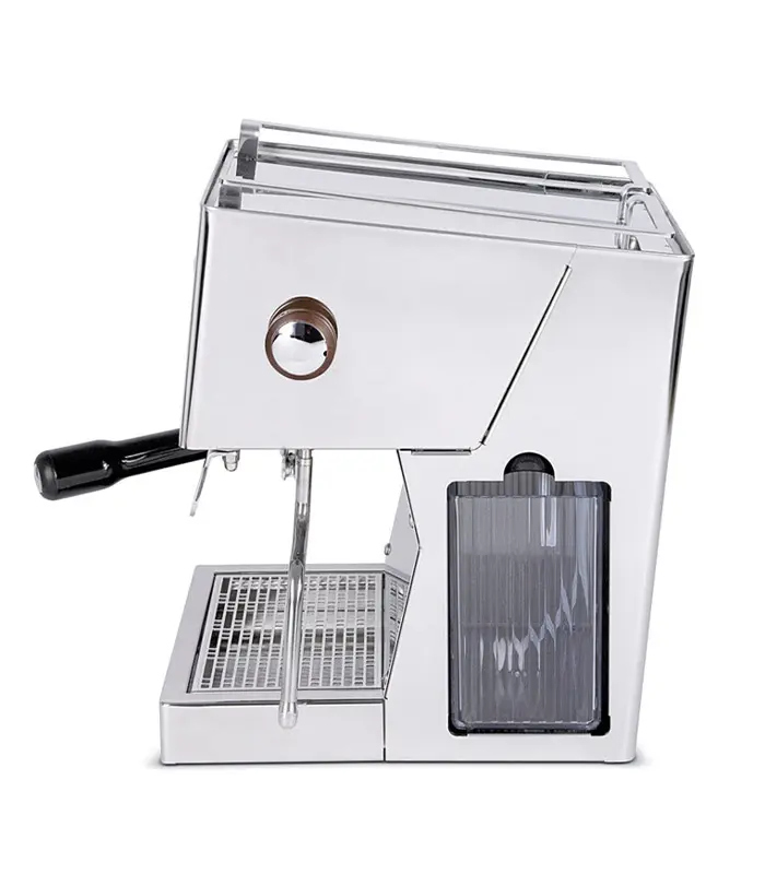 Maskinens hölje är tillverkat av robust rostfritt stål (304). Även portafiltret är i rostfritt stål. Den tystgående vibrationspumpen är utrustad med termiskt skydd. Den sidomonterade vattenbehållaren rymmer 1,8 liter.