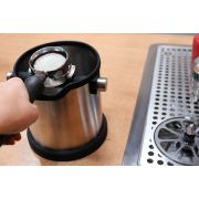 Knock boxen har en ringformad bas av non-slip silikon som håller knock boxen stadigt på plats. Kanten på knockboxen har en silikonkrage som skyddar portafiltret när man slår ut kaffepucken. Knock boxen tål maskindisk.