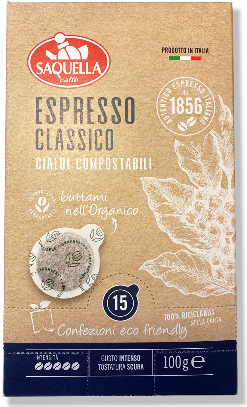 Saquella Classico espressopods innehåller en noggrant utvald blandning av de finaste Arabica- och Robustabönorna, vars rostning framhäver det bästa av italiensk espressokultur. Resultatet är ett krämigt kaffe med intensiv smak och långvarig arom – precis som en äkta italiensk espresso ska vara.