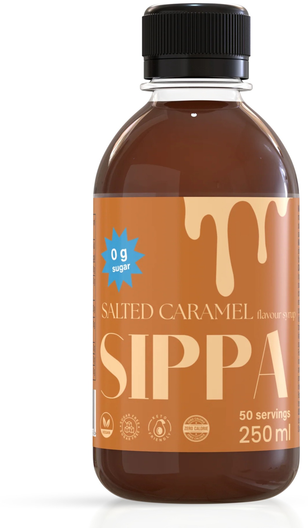 SIPPA Salted Caramel smakssirap skapar den perfekta balansen mellan sött och salt och lyfter dina kaffedrycker, cocktails och andra kulinariska skapelser till en ny nivå. Säg adjö till onödigt socker – njut av en vegansk, ketovänlig, sockerfri och kalorifri smakssirap.