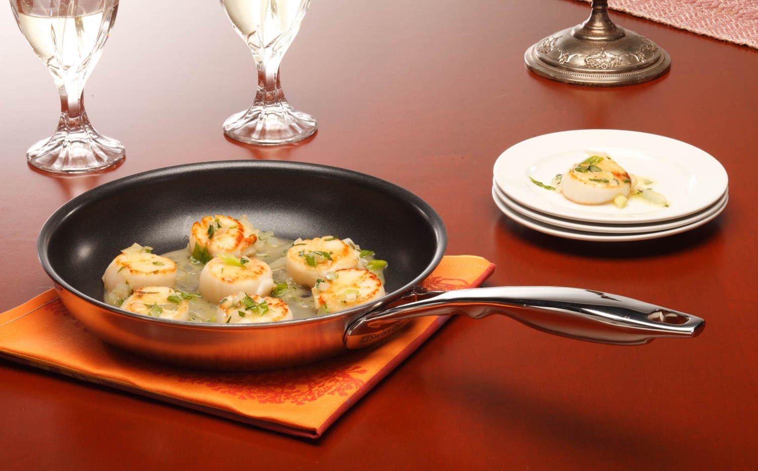 Swiss Diamond Nonstick Clad -seriens stekpannor i rostfritt stål har en flerskiktsstruktur som värms upp effektivt och jämnt, samt en ytterst värmeledande Swiss Diamond XD-diamantbeläggning.
