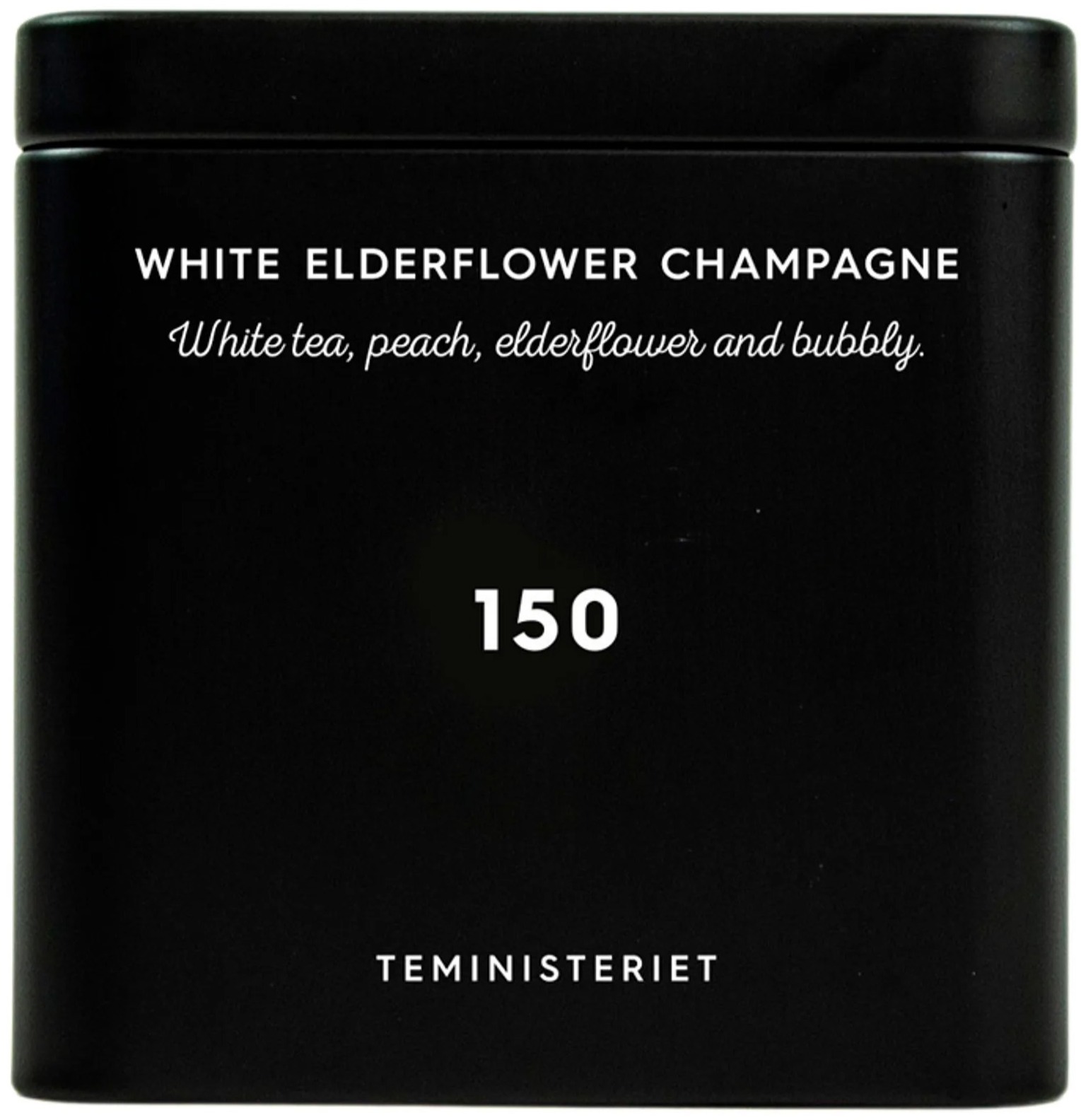 Teministeriet 150 White Elderflower Champagne är en blandning av vitt te, smaksatt med söt persika, doftande fläderblomma och champagne. Subtila blommiga och fruktiga nyanser ger en mild och upplyftande teupplevelse.
