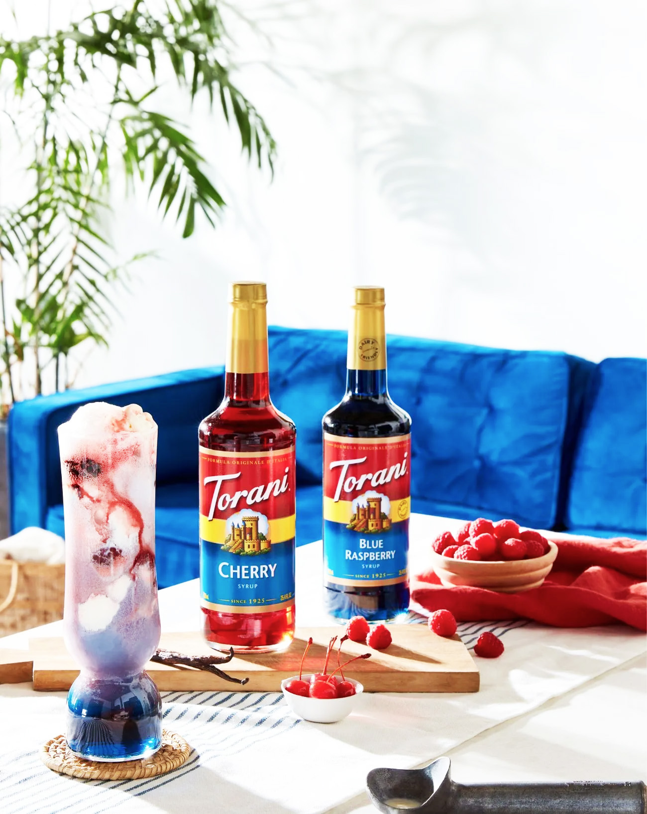 Låt Torani Blue Raspberry syrup fylla dina drycker med den läckra smaken av solmogna hallon, oavsett säsong.