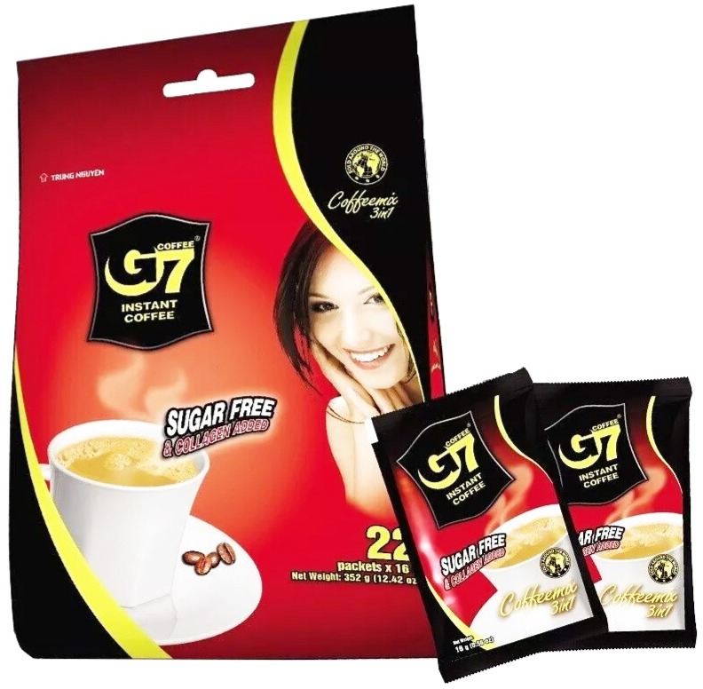 Trung Nguyen G7 sockerfri + kollagen -snabbkaffe 22 x 16 g portionspåsar