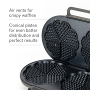 Det högkvalitativa termostatet och non-stick-beläggningen garanterar jämn gräddning och gör att våfflorna lossnar lätt, helt utan extra fett.
